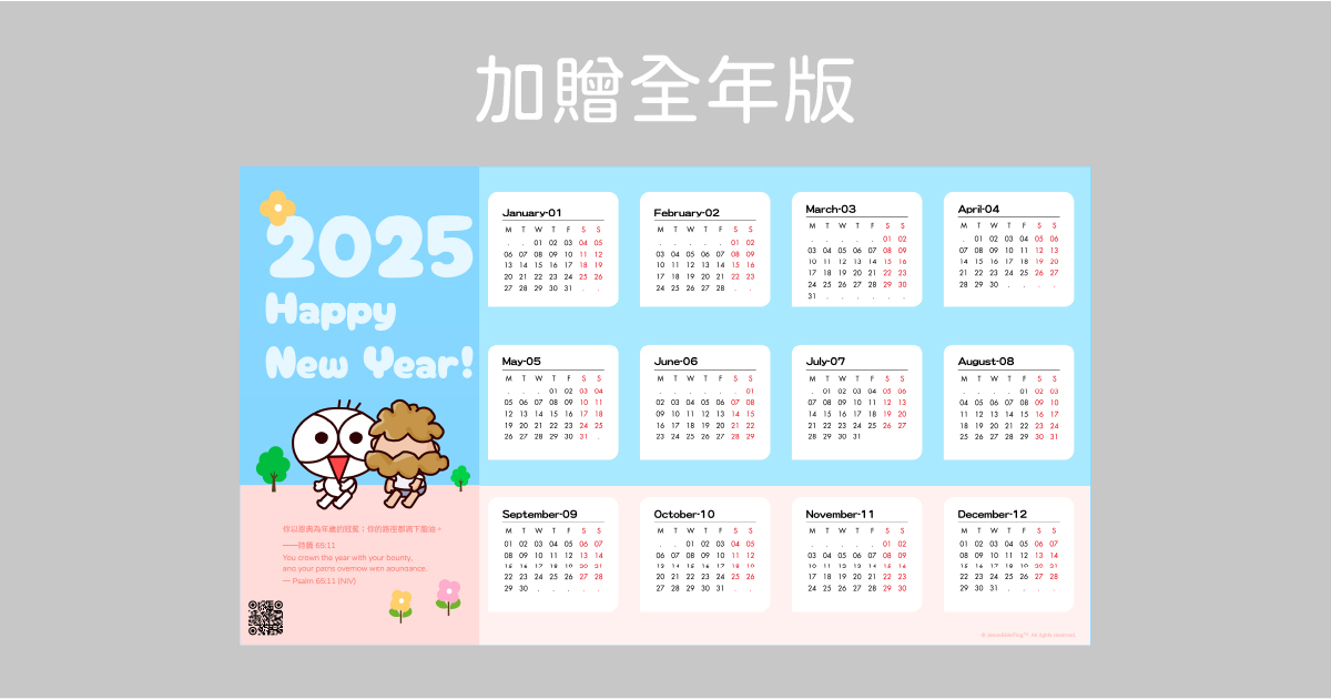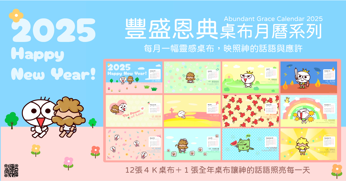 讓每一天都充滿屬靈的啟發與祝福!這套 2025 聖經經文桌布 集合了 13 張精美設計的電腦桌布(包含一張額外的年度總覽),每月搭配深具意義的經文與細膩的視覺主題,帶領您進入信心、盼望與愛的旅程